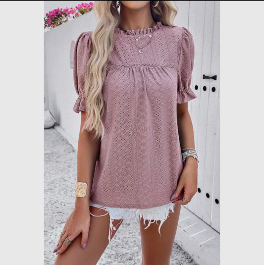 Embroidered Ruffle Sleeve Top